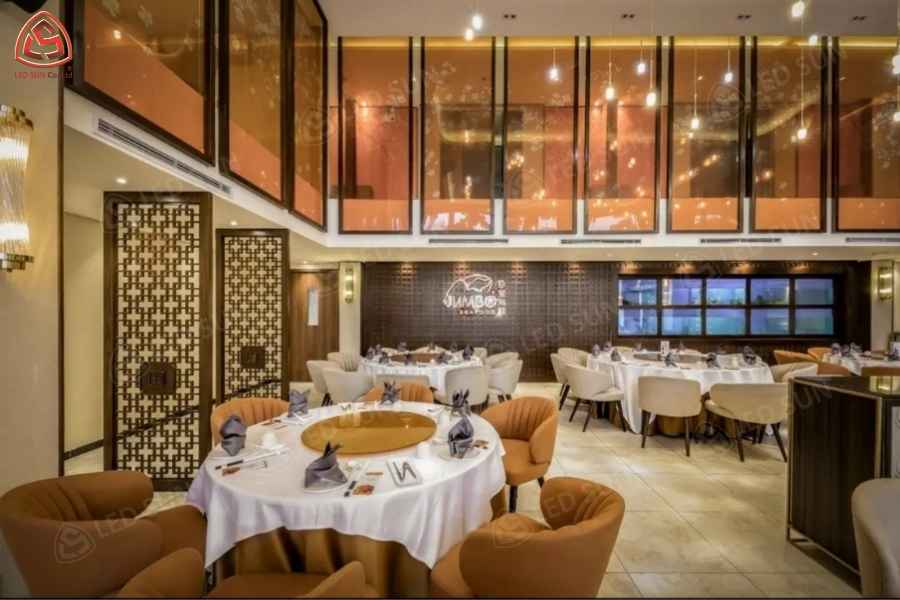 Led Sun thực hiện công trình cho nhà hàng với diện tích nhà hàng lên đến 100m².