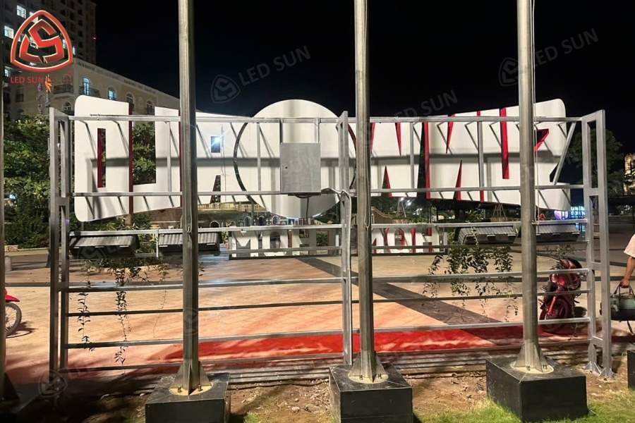 Công trình yêu cầu thi công bộ chữ kích thước lớn, đảm bảo độ bền ngoài trời và khả năng hiển thị rõ ràng trong nhiều điều kiện ánh sáng.