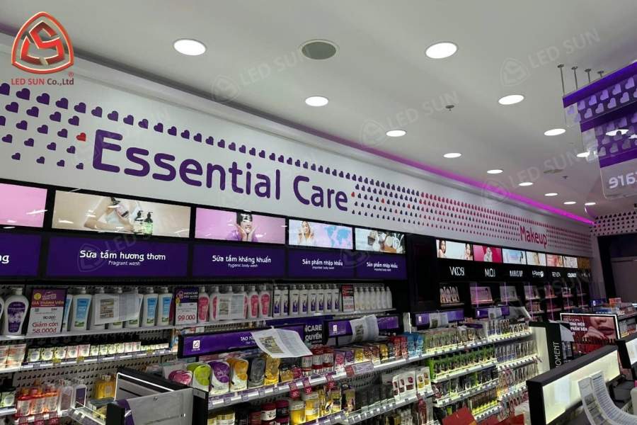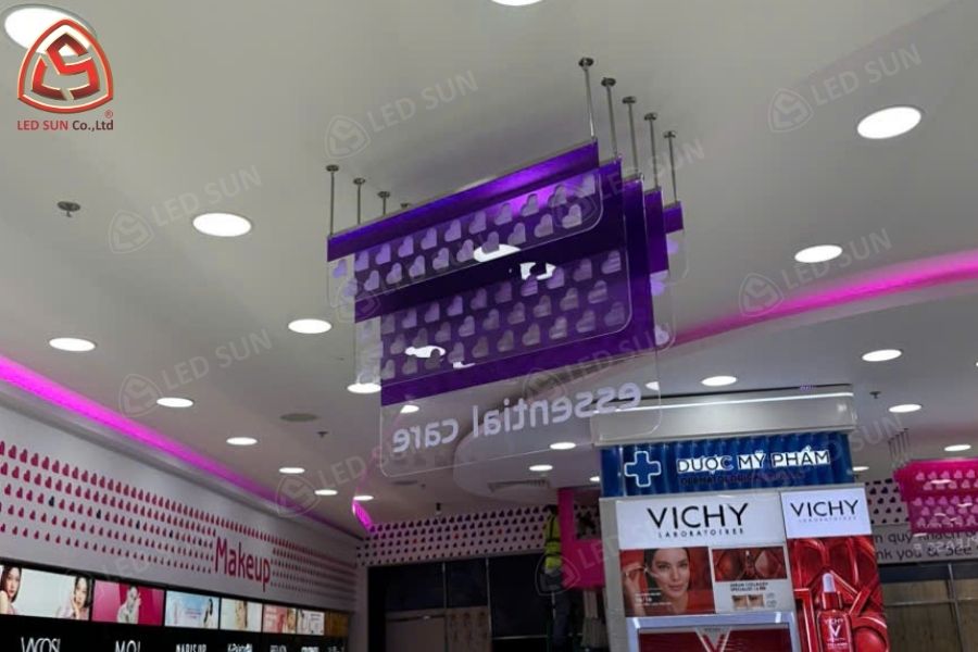 Led Sun triển khai thiết kế và thi công gian hàng với hệ thống hộp đèn quảng cáo, bảng thông tin sản phẩm và logo thương hiệu. Các hộp đèn được sử dụng tấm backlit film in UV nhằm đảm bảo hình ảnh hiển thị rõ ràng trong môi trường ánh sáng của trung tâm thương mại.