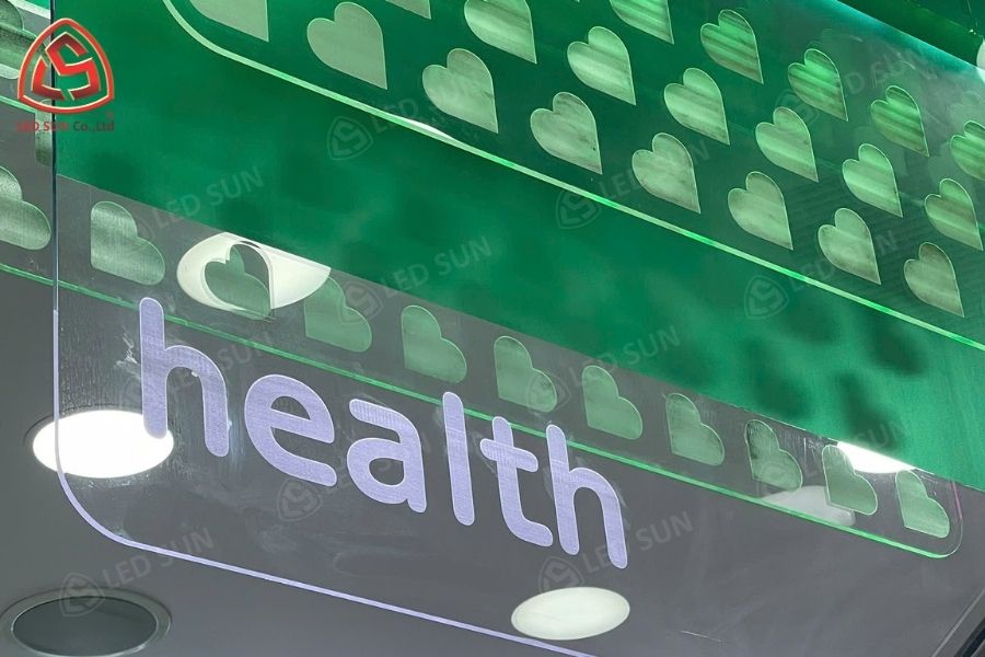 Vật liệu sử dụng: Mica, khung gỗ, backlit film, inox, pp in uv