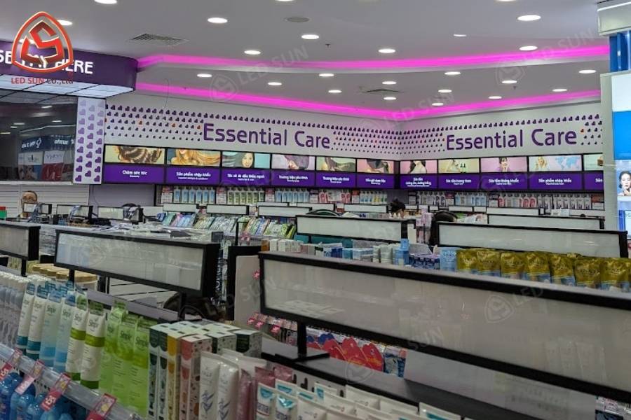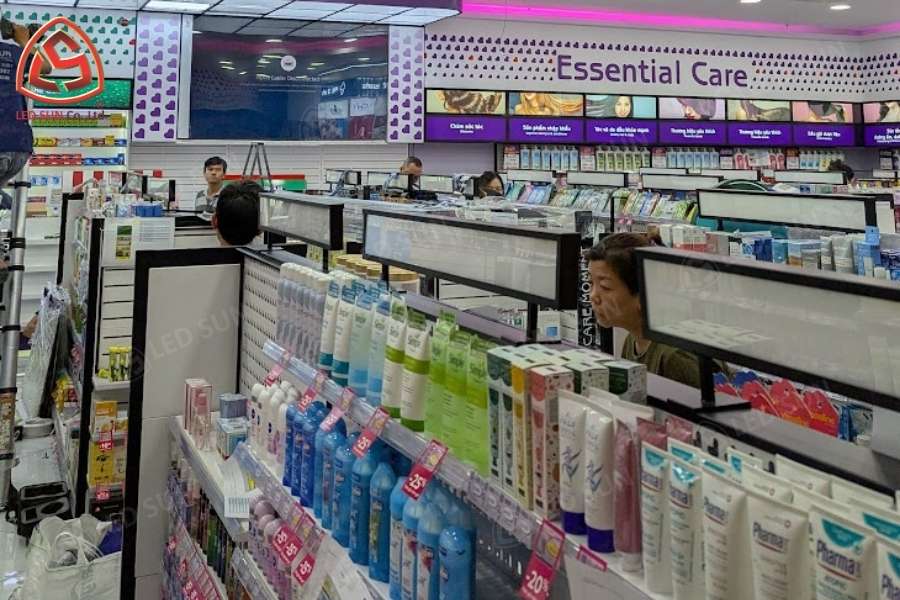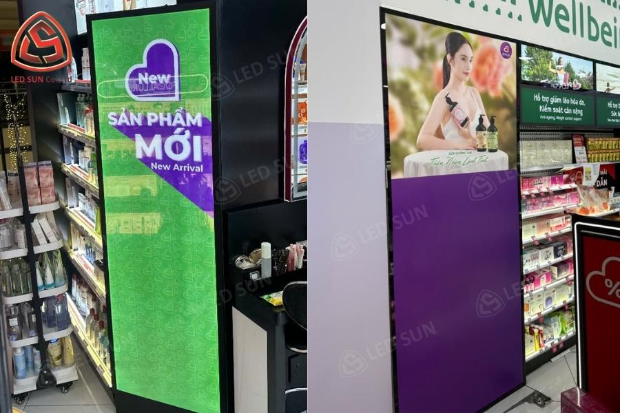 Phong cách thiết kế: Gian hàng bán lẻ với hệ thống hộp đèn và bảng thông tin sản phẩm