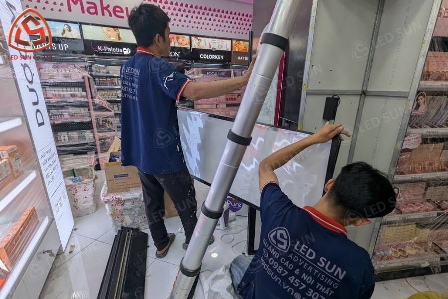 Dự án bao gồm 25 hộp đèn nội thất sử dụng tấm backlit film giúp hiển thị hình ảnh sản phẩm rõ nét.