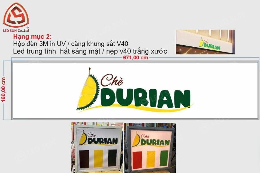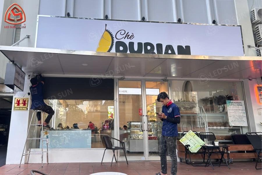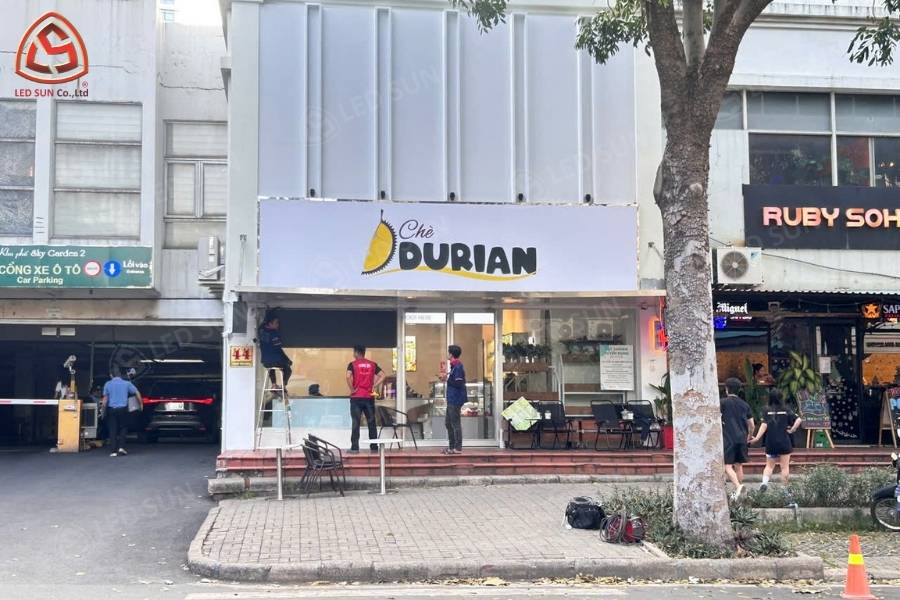 Led Sun thực hiện thiết kế, sản xuất và thi công hệ thống bảng hiệu, hộp đèn quảng cáo và thi công màn hình LED cho quán chè Durian tại khu đô thị Phú Mỹ Hưng, Quận 7, TP.HCM.