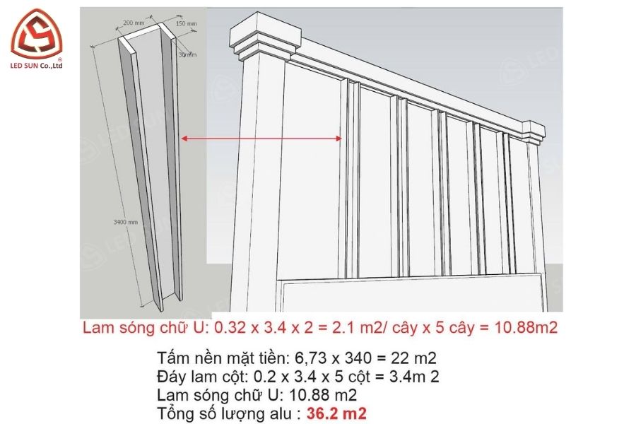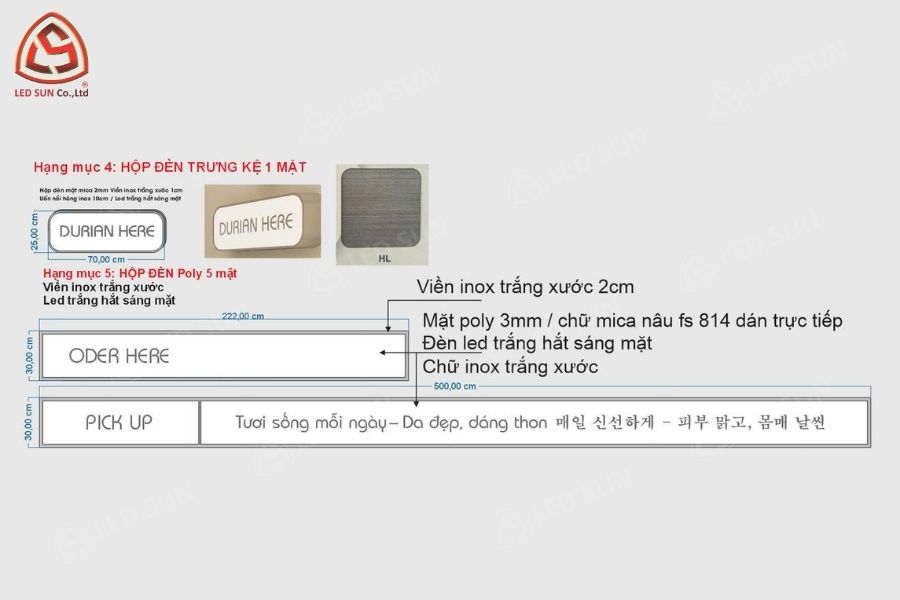Vật liệu sử dụng: Khung sắt, lam sóng chữ U, bạt 3M in UV, backlit film, hệ thống LED
