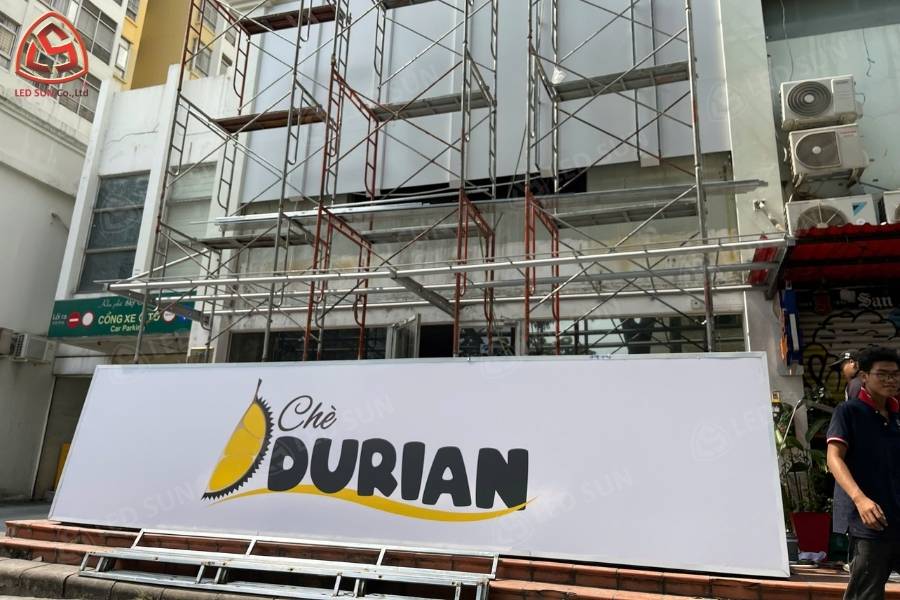 Việc kết hợp bảng hiệu và màn hình LED giúp thương hiệu Durian truyền tải thông tin sản phẩm một cách hiện đại và thu hút.