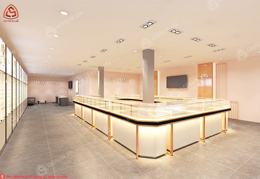 Với vai trò là đơn vị thiết kế và thi công, Led Sun đã đồng hành cùng Huy Thanh Jewelry để tạo nên hệ thống chiếu sáng hoàn hảo cho chuỗi cửa hàng. Chúng tôi tập trung vào công việc sử dụng đèn LED sáng cao cấp, được tinh chỉnh kỹ năng nâng cao vẻ đẹp tự nhiên và chi tiết tinh tinh của từng mẫu trang sức. Quá trình thực hiện tối ưu từ khâu khảo sát, lập kế hoạch kỹ thuật cho đến lắp đặt, đảm bảo mỗi cửa hàng đều sở hữu không gian chiếu sáng hài hòa và sang trọng. Thành quả này không chỉ đáp ứng sự mong đợi của khách hàng mà còn có thể hiện hữu tâm trí và chuyên nghiệp của đội ngũ Led Sun.