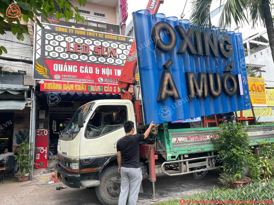 Chất liệu và màu sắc: Alu, mica, đèn led