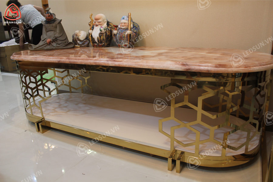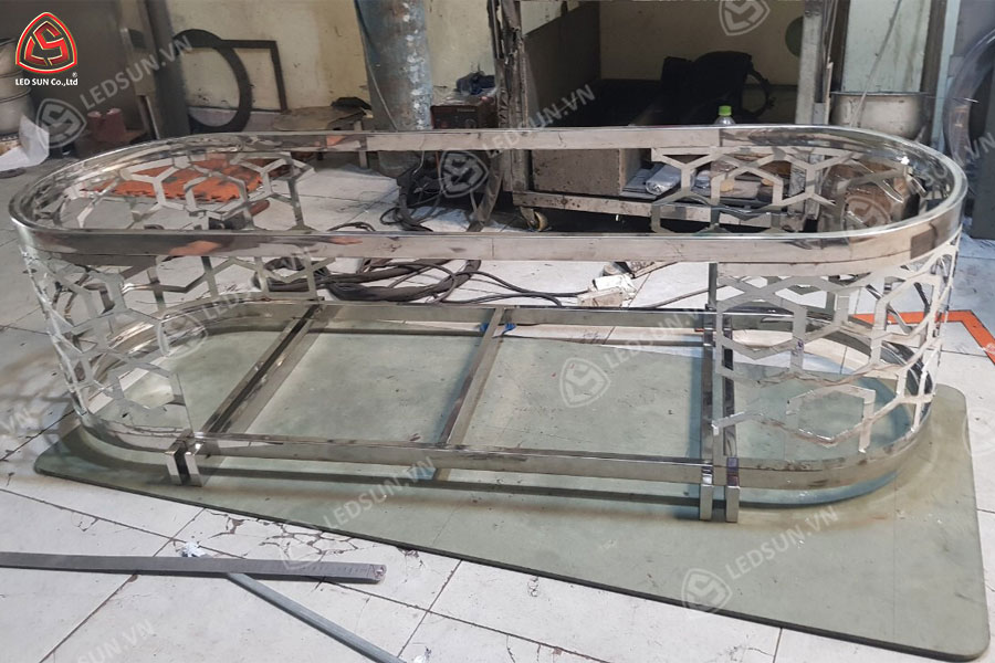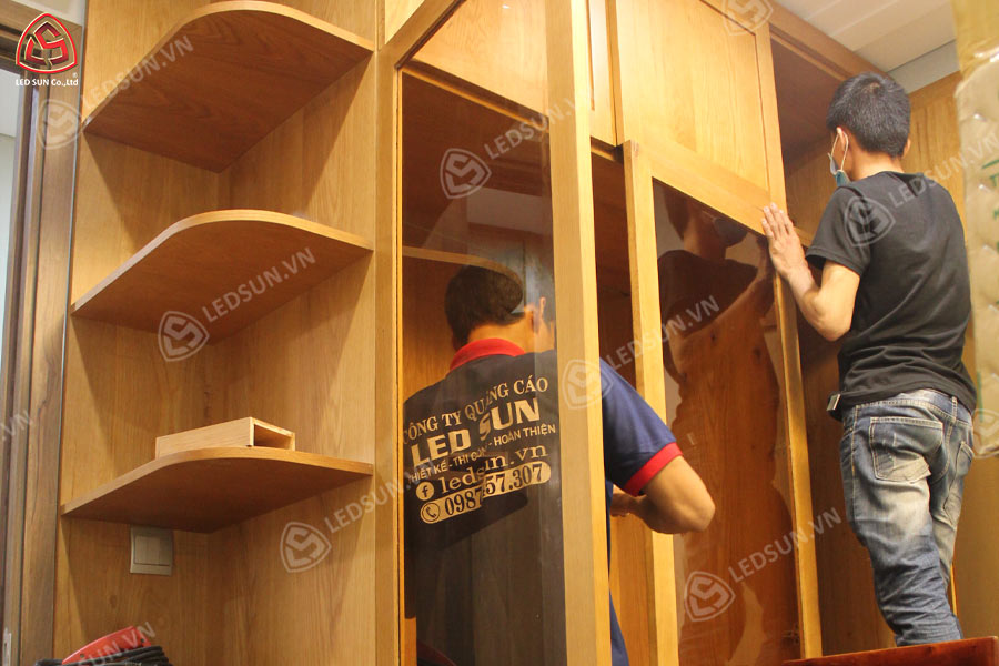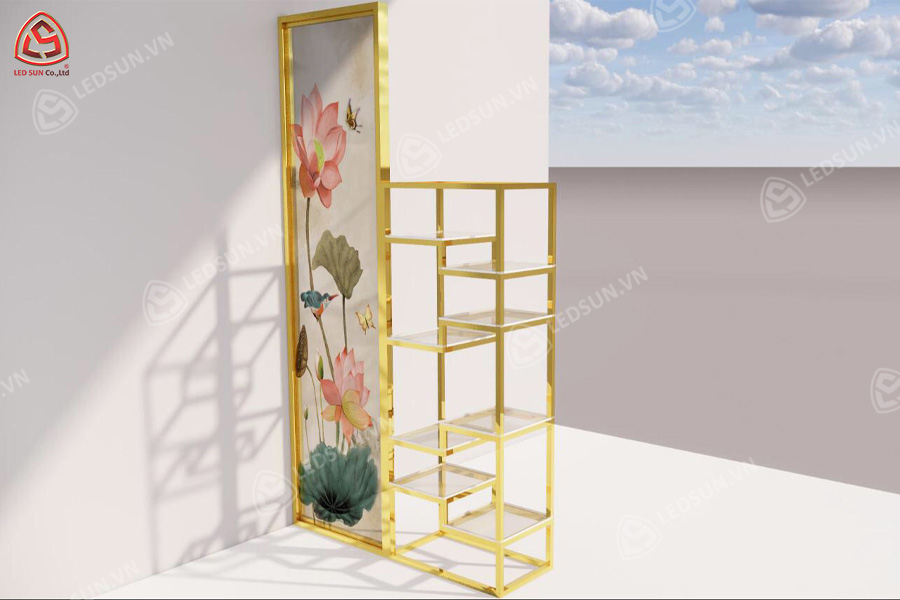 Chất liệu và màu sắc: Gỗ, alu, mica và inox