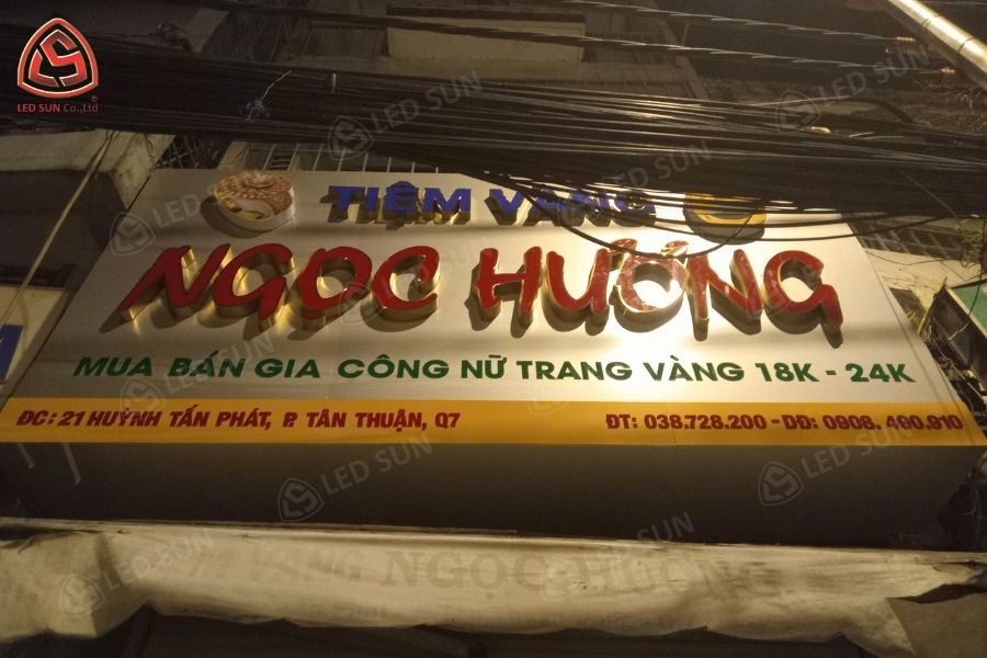 Thường dùng cho cửa hàng, showroom, văn phòng công ty, nhà xưởng – phù hợp khi cần sự chắc chắn, sang trọng nhưng không nhất thiết phải phát sáng ban đêm.