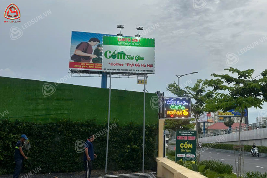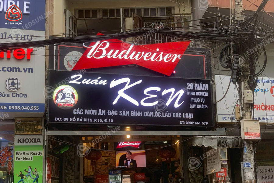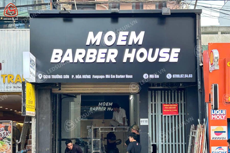 Bước 5: Lắp đặt hoàn thiện: Bảng hiệu được cố định lên tường, mặt dựng hoặc khung sắt bằng ke sắt và vít nở. Sau khi lắp xong, đội ngũ kỹ thuật sẽ kiểm tra ánh sáng, kết nối điện, hoàn thiện các chi tiết và bàn giao cho khách hàng.