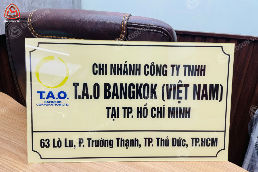 Led Sun tự hào là đơn vị chuyên làm bảng tên công ty mica chất lượng cao tại TP. Hồ Chí Minh. Với nhiều năm kinh nghiệm trong việc làm bảng tên công ty, chúng tôi cam kết mang đến sản phẩm đạt tiêu chuẩn về thẩm mỹ và độ bền, đáp ứng mọi nhu cầu của khách hàng từ thiết kế đơn giản đến phức tạp. Đội ngũ kỹ thuật viên chuyên nghiệp cùng quy trình sản xuất hiện đại giúp thời gian thi công nhanh chóng và chính xác. Ngoài ra, Led Sun cũng cung cấp dịch vụ tư vấn thiết kế miễn phí, giúp bạn chọn lựa mẫu bảng tên phù hợp với phong cách và ngân sách của doanh nghiệp. Hãy đến với Led Sun để sở hữu những bảng tên mica đẹp mắt, chất lượng, và bền lâu.