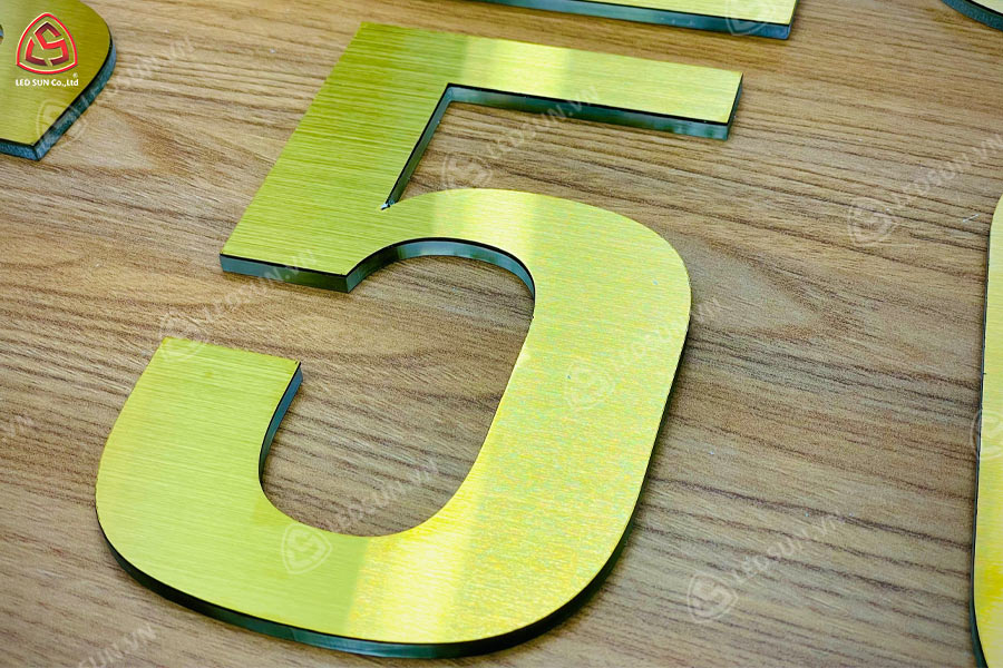 Chữ inox vàng gương có bề mặt sáng bóng, phản chiếu tốt, tạo cảm giác sang trọng và cao cấp. Khi kết hợp với mica cháo sáng đèn, mẫu chữ này thường được sử dụng cho showroom, nhà hàng, khách sạn hoặc các thương hiệu cao cấp.