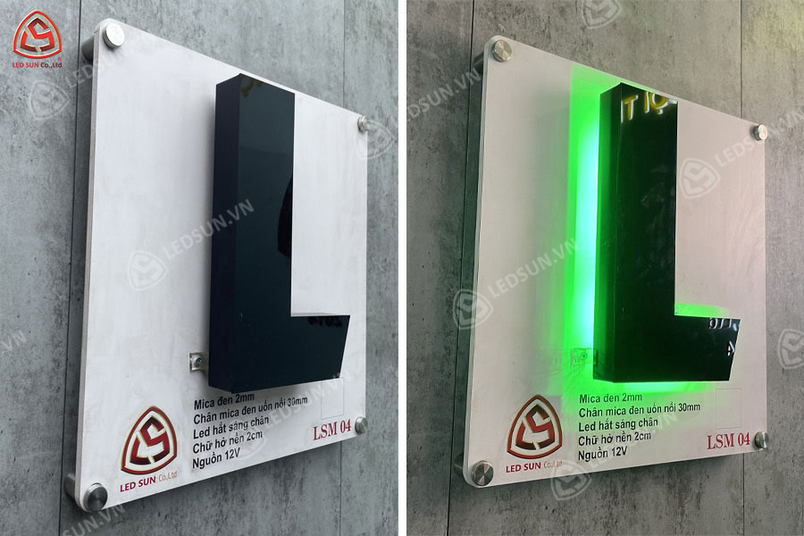 Chữ nổi mica hở nền sáng chân là loại chữ nổi được làm từ mica, với phần chân chữ thiết kế hở, không tiếp xúc trực tiếp với nền, tạo ra khoảng trống phía sau chữ. Chân chữ thường được làm từ vật liệu có khả năng phát sáng, như mica trong hoặc LED, giúp tạo hiệu ứng ánh sáng mềm mại hắt lên tường hoặc không gian xung quanh. Thiết kế này mang lại vẻ đẹp hiện đại, tạo điểm nhấn và thu hút sự chú ý trong các bảng hiệu, logo hay quảng cáo, đồng thời tăng cường hiệu quả chiếu sáng.